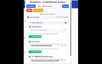 XPathSense, Chrome tarayıcısı için geliştirilmiş bir eklentidir ve kullanıcıların web sayfalarını akıllıca tarayarak otomasyon için AI destekli XPath'ler çıkarmalarına yardımcı olur. Bu araç, kalite güvence test uzmanları, otomasyon mühendisleri ve geliştiriciler için tasarlanmıştır. Kullanıcılar, herhangi bir web sayfasından hızlı bir şekilde stabil ve insan tarafından okunabilir lokasyonlar ve farklı çerçeveler için AI destekli Sayfa sınıfı çıkarabilirler.